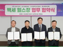 부산 남구와 부산 남구시설관리공단(이사장 이무진), 부산 남구체육회(회장 정춘식), 대한메포츠협회(협회장 나용승)는 지난 20일, 남구청에서 어르신 전용 백세 헬스장 전문 운영을 위한 업무협약(MOU)을