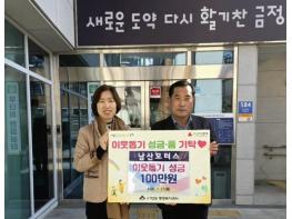 부산 금정구 구서2동은 지난 27일 (주)남산모터스에서 이웃돕기성금 100만 원을 기탁했다고 밝혔다.손원익 대표는“설을 앞두고 취약계층 이웃들에게 따뜻한 손길이 됐으면 좋겠다. 앞으로도 지역사회를 위