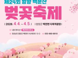 함양군은 ‘제24회 함양 백운산 벚꽃축제’가 오는 4월 4일부터 5일까지 이틀간 백전면 다목적광장 일원에서 개최된다고 밝혔다. 백전면 문화체육회(회장 황원하)가 주최·주관하는 이번 축제는 아름다운 50