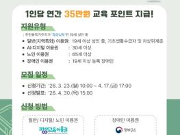 함양군은 군민의 자기 계발과 교육 격차 완화를 위해 3월 23일부터 4월 17일까지 ‘2026년 경상남도 평생교육이용권’ 1차 신청을 받는다고 밝혔다. 지원 대상은 함양군에 주소를 둔 19세 이상 기초생활수급