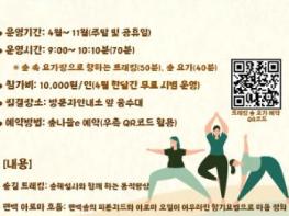 고성군은 갈모봉 자연휴양림에서 ‘힐링 트레킹 숲 요가’ 프로그램’을 오는 4월부터 11월까지 운영한다고 밝혔다.프로그램은 주말 및 공휴일 오전 9시부터 70분간 진행되며, 숲 속 요가장까지 이동하는 트