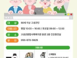 고성군이 운영하는 고성군종합사회복지관 분관에서는 지역 어르신들의 건강하고 활기찬 일상생활을 지원하기 위해 건강증진실을 운영하고 있다.건강증진실은 평일 오전 10시부터 오후 4시까지, 토요일은 오