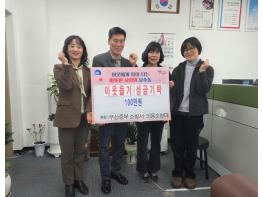 거창군은 지난 24일 (사)대한미용사회 경상남도지회 거창군지부(지부장 구희자)가 지역내어려운 이웃을 돕기 위한 성금 100만 4천 원을 아림1004운동에 기부했다고 밝혔다.이번 기부는 미용업에 종사하는 회
