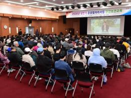진주시는 2026년 상반기 공공일자리사업 참여자의 안전한 근무환경 조성과 사고 예방을 위해 24일 시청 시민홀에서 안전보건교육을 실시했다.이번 교육에는 상반기 공공일자리사업에 선발된 350여 명이 참석