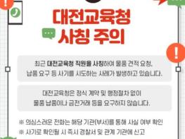 대전시교육청은 최근 직원을 사칭해 물품 납품 요청과 선입금 등을 시도하는 사기 사례가 발생함에 따라 각별한 주의를 요청했다.사칭 사례는 공무원 명함을 도용해 전화와 문자로 특정 업체의 물품(소방물