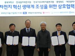 대전시는 11일 충북대학교에서 충북도, 한국원자력연구원, 한국기초과학지원연구원과 업무협약을 체결했다. 대전・충북 지역과 학・연 기관이 보유한 기술역량과 인프라를 유기적으로 연계해 이차전지산업의