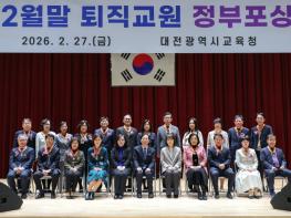 대전시교육청은 2월 27일, 대전시교육청 대강당에서 퇴직교원 정부포상 대상자와 가족 등이 참석한 가운데 ‘2026년 2월말 퇴직교원 정부포상 전수식’을 개최했다고 밝혔다.이번 포상 수상자들은 오랜 세월