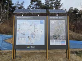 예산군은 군민과 등산객이 도로명 주소정보를 쉽게 확인할 수 있도록 수암산 등산로인 온천솔바람길과 내포사색길 입구에 태양광 LED(발광 다이오드) 주소정보안내판을 설치했다고 11일 밝혔다.안내판에는