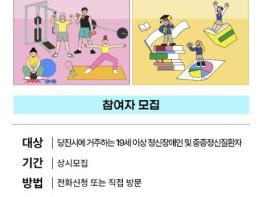당진시는 정신건강복지센터에서 중증 정신질환자 주간재활 프로그램 신규 참여자를 연중 모집한다고 21일 밝혔다.주간재활 프로그램은 중증 정신질환자의 사회 복귀에 필요한 다양한 활동을 제공해 참여자의