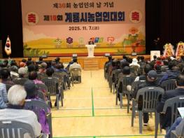 계룡시는 지난 7일 계룡시민체육관에서 성대한 분위기 속에 제30회 농업인의 날(11월 11일)을 기념하며 제19회 계룡시 농업인대회를 개최했다고 밝혔다.농촌지도자 계룡시연합회 등 관내 5개 농업인 단체가