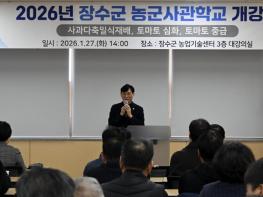 장수군은 지난 27일 농업기술센터 대강의실에서 교육생 130여 명이 참석한 가운데 ‘2026년 장수군 농군사관학교 개강식’을 성황리에 개최했다. 이날 개강식은 최훈식 장수군수의 격려사를 시작으로 김승희
