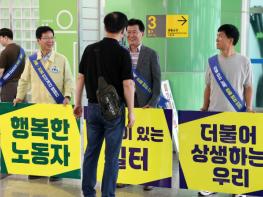 광주 광산구가 9일 구청 1층 로비에서 수자원의 효율적 관리 및 물 절약 인식을 높이기 위해 ‘공공청사 물 절약 캠페인’을 진행했다.광산구는 직원 이동이 많은 출근 시간을 활용해 △일상생활 물 절약 실