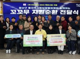광주 광산구는 민관 협력으로 추진한 지난해 ‘꼬리에 꼬리를 무는 자원순환 나눔 활동’으로 버려진 이불, 의류 등 15톤 이상이 재활용되고, 이 수익에 기부가 더해져 총 800만 원이 지역사회에 환원됐다고