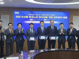 완도군은 지난 17일 전라남도, ㈜풀무원푸드앤컬처와 ‘전남 수산물 로코노미(지역 특화 경제) 외식 상품 개발 사업’의 일환으로 휴게소 특화 메뉴 개발을 위한 업무 협약을 체결했다.협약은 완도 전복 산