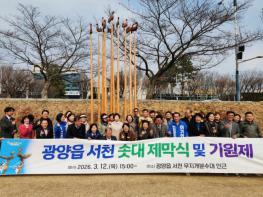 광양시 광양읍은 지난 3월 12일 광양읍 서천 무지개분수대 인근에서 지역의 안녕과 풍요를 기원하는 ‘솟대 제막식 및 기원제’를 개최했다.이번 행사는 광양읍의 상징물이 될 솟대 설치를 기념하고 주민 화