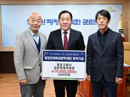 평창고랭지김장축제위원회가 11일 평창군청을 방문하여 평창인재육성장학재단에 장학금 1,000만 원을 기탁했다. 평창고랭지김장축제위원회는 지역 대표 축제인 ‘평창고랭지김장축제’를 성공적으로 이끌며