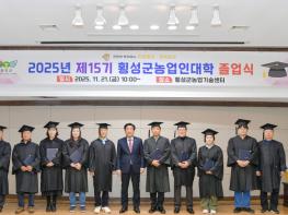 횡성군농업인대학은 21일 횡성군농업기술센터에서 ‘2025년 제15기 횡성군농업인대학 졸업식’을 진행했다. 제15기 농업인대학은 지난 2월부터 11월까지 횡성사과, 횡성한우, 미래농업인, 농업경영최고사관C