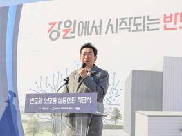 반도체 소모품 실증센터 착공식이 19일 오후 2시 원주 부론일반산업단지에서 개최됐다. 착공식은 황욱중 강원테크노파크 글로벌사업단장의 경과보고와 김진태 강원특별자치도지사의 기념사, 원강수 원주시
