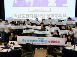 올해 청년도전지원사업에 참여한 춘천 청년들이 서로의 경험을 나누며 한 해의 성장을 돌아보는 자리가 마련됐다.춘천시는 19일 커먼즈필드 춘천 안녕하우스에서 청년도전지원사업 이수 청년과 일자리 유관