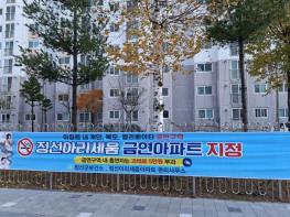 정선아리세움아파트 관리사무소는 정선아리세움아파트가 정선군 제2호 금연아파트로 지정됨에 따라 단지 내 금연 안내 현판과 홍보 현수막을 설치했다.금연아파트 지정은 국민건강증진법에 따라 공동주택의