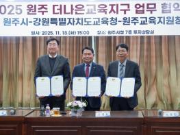 강원특별자치도교육청은 원주시, 원주교육지원청과 11월 18일 원주시청에서 ‘원주 더나은교육지구 연장지정 업무협약’을 체결했다. 이번 협약은 2018년 제1기 4년, 2022년 제2기 4년 운영에 이어 2026년부