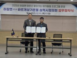 하장면은 12월 11일, 바르게살기운동삼척시협의회와 관내 어르신들을 위한 ‘찾아가는 여가활동 프로그램 운영’ 업무협약(MOU)을 체결했다.이번 협약에 따라 협의회는 2026년 1월부터 3월까지 하장면 경로