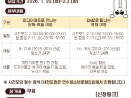 연수청소년문화의집은 겨울방학을 맞아 청소년들의 알찬 방학 생활과 문화·예술적 소양 함양을 돕기 위해 ‘겨울방학 프로그램’을 운영한다. 이번 프로그램은 ▲현장 체험 중심의 문화·예술 활동을 통해 문