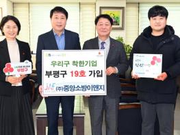 부평구는 27일 ㈜중앙소방이앤지를 ‘우리구 착한기업’ 제19호로 선정했다.갈산동에 소재한 ㈜중앙소방이앤지는 1993년 ‘부평소방공사’로 출발해 현재는 소방시설 설계·감리·시공 및 유지관리 전반을 아