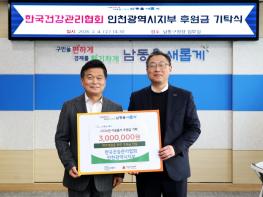인천시 남동구는 한국건강관리협회 인천광역시지부(본부장 이상철)로부터 어려운 이웃을 위한 후원금 300만 원을 기탁받았다고 6일 전했다. 한국건강관리협회 인천광역시지부는 2026년 3월 남동구 이전 예정