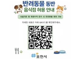 포천시는 '식품위생법 시행규칙' 개정으로 반려동물 동반 음식점 운영이 제도적으로 가능해짐에 따라, 관련 기준을 마련하고 오는 3월 1일부터 반려동물 동반 출입 음식점 제도를 시행한다고 밝혔다.이번 제