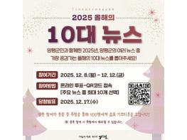 양평군은 ‘2025년 양평군 올해의 10대 뉴스’ 선정을 위한 온라인 투표를 오는 8일부터 12일까지 실시한다고 밝혔다.이번 투표는 올 한 해 군민들로부터 가장 공감을 받은 주요 뉴스를 선정하고, 군민들의
