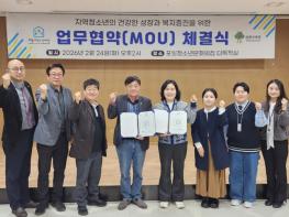 의왕시청소년재단이 2월 24일, 지역청소년의 건강한 성장과 복지 증진을 위해 명륜보육원과 포일청소년문화의집 다목적실에서'지역 청소년의 건강한 성장을 위한 업무협약'을 체결했다.이번 협약은 보육원에