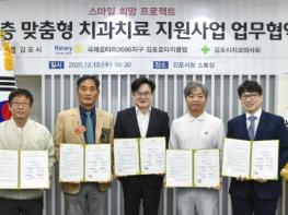 김포시는 12월 10일 김포시청 소통실에서 국제로타리클럽 3690지구 김포로타리 클럽, 김포시치과의사회 참여의료기관과 ‘취약계층 맞춤형 치과치료 지원’ 업무협약을 체결했다.이 사업은 국제로타리 재단