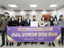 성남시는 보건복지부가 주관한 ‘노인 맞춤 돌봄 서비스 평가’에서 우수기관으로 선정돼 장관상을 받았다고 5일 밝혔다.이번 평가는 전국 229개 기초자치단체를 대상으로 △노인 맞춤 돌봄 서비스 추진을