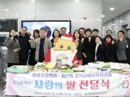 의료법인 원광의료재단 원광종합병원이 4일 화성특례시 화산동행정복지센터에 지역사회를 위한 사랑의 쌀 160여 포를 전달했다.이날 나눔은 제5대 이경환 병원장 취임을 기념해 지역사회 거점 종합병원으로