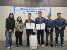 화성특례시 효행구가 13일 SK인텔릭스와 ‘공기청정기 무상임대 설치 및 운영 업무협약(MOU)’을 체결하고 청사 내 실내 공기질 개선을 위한 인공지능(AI) 자율주행 공기청정기를 설치했다. 이번 협약은 지
