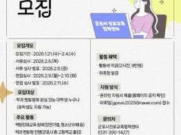 (재)군포시청소년재단 군포시진로교육협력센터는 관내 청소년의 진로 탐색과 진로 역량 강화를 위해 '2026년 군포시진로교육협력센터 교육기부자'를 모집한다고 밝혔다.이번 교육기부자 모집은 2026년 한 해