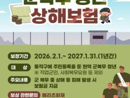 동작구가 2024년부터 서울시 자치구 최초로 시행 중인 군복무 청년 상해보험 지원 사업을 지속 추진한다고 밝혔다.지원대상은 동작구에 주민등록을 둔 현역 군복무 청년 약 700명으로, 보장기간은 2월 1일부