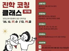 양천구는 예비 중·고생 자녀를 둔 학부모를 대상으로 상급학교 진학을 위한 솔루션을 제공하기 위해 ‘학부모 진학 코칭 클래스’를 오는 17일과 19일 이틀간 운영한다고 밝혔다.중·고교 진학은 학습 환경과