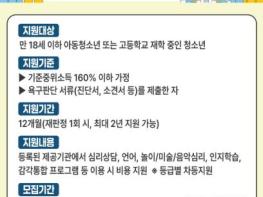 서울 강동구는 2월 2일부터 24일까지 강동구 아동‧청소년을 대상으로 ‘아동‧청소년 심리지원 서비스’ 대상자를 모집한다고 밝혔다.아동·청소년 심리지원 서비스는 지역사회서비스 투자사업의 하나로, 심