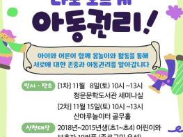 종로구가 내달 아동권리주간을 기념해 참여형 아동권리교육을 운영한다.아동권리주간은 세계 아동학대 예방의 날(11월 19일)과 유엔아동권리협약 비준일(11월 20일)을 기념하는 기간이다. 구는 이 시기에 맞
