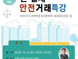 서울 성동구는 오는 12월 6일 오후 2시 성동구청 3층 대강당에서 법률 전문가와 함께하는 ‘전월세 안전거래 특강’을 개최한다.이번 특강은 부동산 거래 과정에서 발생할 수 있는 주요 법률문제를 바로 알