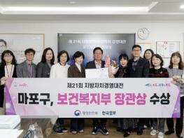 마포구는 행정안전부와 한국일보가 공동 주최한 제21회 대한민국 지방자치 경영대전에서 우수상인 ‘보건복지부 장관상’을 수상하는 쾌거를 이뤘다.‘대한민국 지방자치 경영대전’은 지방자치단체의 창의