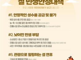 ■ 2026 설 민생안정대책주요 내용을 국민 여러분께 보고드립니다.#1. 안정적인 성수품 공급 및 물가· 16대 성수품 27만 톤 공급(평시 대비 1.5배)· 농·축·수산물 할인 총 910억 원 지원(최대 50% 할인)· 전