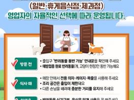 [영업자용]2026년 3월 1일 본격 시행!반려동물 동반출입 음식점(일반·휴게음식점·제과점)■ 영업자의 자율적인 선택에 따라 운영됩니다.(방문 전)· 출입구 '반려동물 동반 가능' 안내문을 확인해 주세요.·