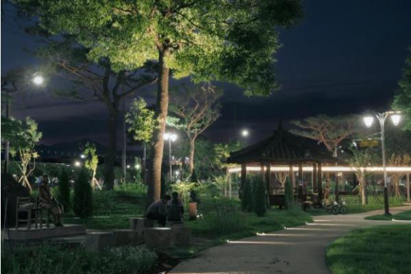 야간 경관도 개선해 공원 내에 은은한 LED 조명이 설치됐으며 군립도서관과 문화예술회관 외벽에도 조명이 더해져 주변 분위기를 한층 밝고 세련되게 연출했다.