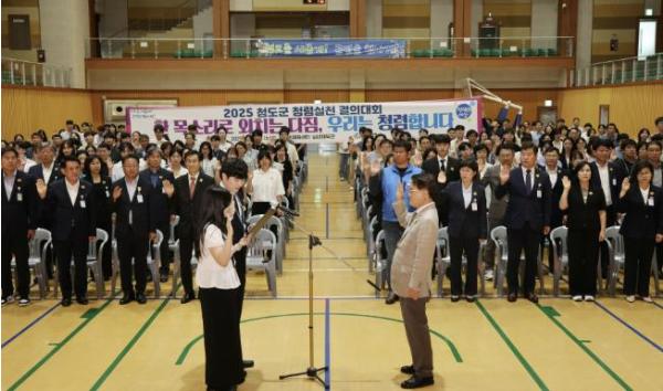 [한국제일신문, 김성옥기자] 청도군은 7월 1일, 청도 국민체육센터 실내체육관에서 민선8기 제11대 청도군수 취임 3주년 기념식과 연계하여 ‘2025 반부패·청렴실천 결의대회’를 개최했다.