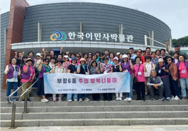 나들이에 참석한 한 어르신은 “더운 여름 여행을 할 엄두가 나지 않았는데 평소 가보고 싶었던 광명동굴과 한국이민사박물관을 모두 관람할 수 있어서 좋았다”며 “마을 주민들과 함께 하룻동안 피서를 즐길 수 있게 해준 부평6동 주민자치회에 감사하다”고 전했다.