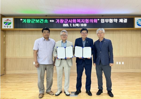 [한국제일신문, 김성옥기자] 거창군보건소는 거창군사회복지협의회(회장 임규순)와 3일 보건소 대회의실에서 취약계층 건강증진과 복지지원을 위한 업무협약을 체결했다.