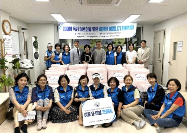 100세를 넘긴 어르신의 눈가에 고마움이 어렸다. 지난 1일, 춘의종합사회복지관은 부천자생의료재단 임직원 및 부천자생봉사단과 함께 지역 내 장수 어르신들을 위한 ‘시원한 여름나기 지원사업’을 진행했다. 이날 복지관 1층에서는 여름 이불 전달식을 시작으로, 자원봉사자들이 직접 어르신 가정을 찾아가 이불과 달걀을 전달하고, 거동이 불편한 분들을 위해 집 안 청소까지 도왔다.